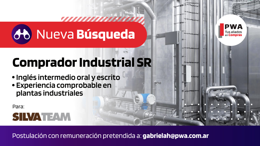 Estamos buscando un Comprador Sr. Industrial para la empresa SilvaTeam, con experiencia comprobable en compras de plantas industriales y buen nivel de inglés oral y escrito.